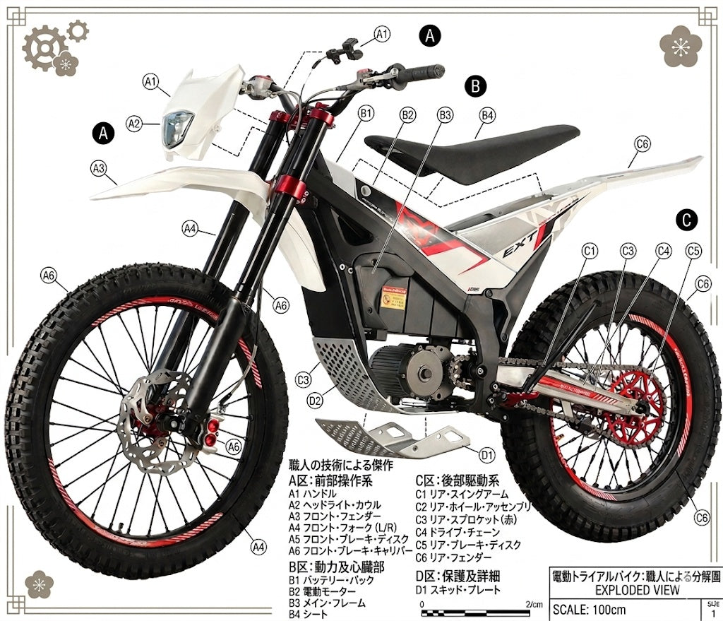 The aesthetics of the Arctic Leopard Snow Leopard EX are as striking as its performance. Designed with the classic silhouette of a competitive dirt bike, it showcases smooth lines that radiate power and agility. With a bold and stylish color scheme, the Snow Leopard EX embodies a strong athletic spirit. Practical features like high-intensity lighting and robust fenders not only enhance visibility and protection but also contribute to the overall tough and aggressive appearance of the bike.